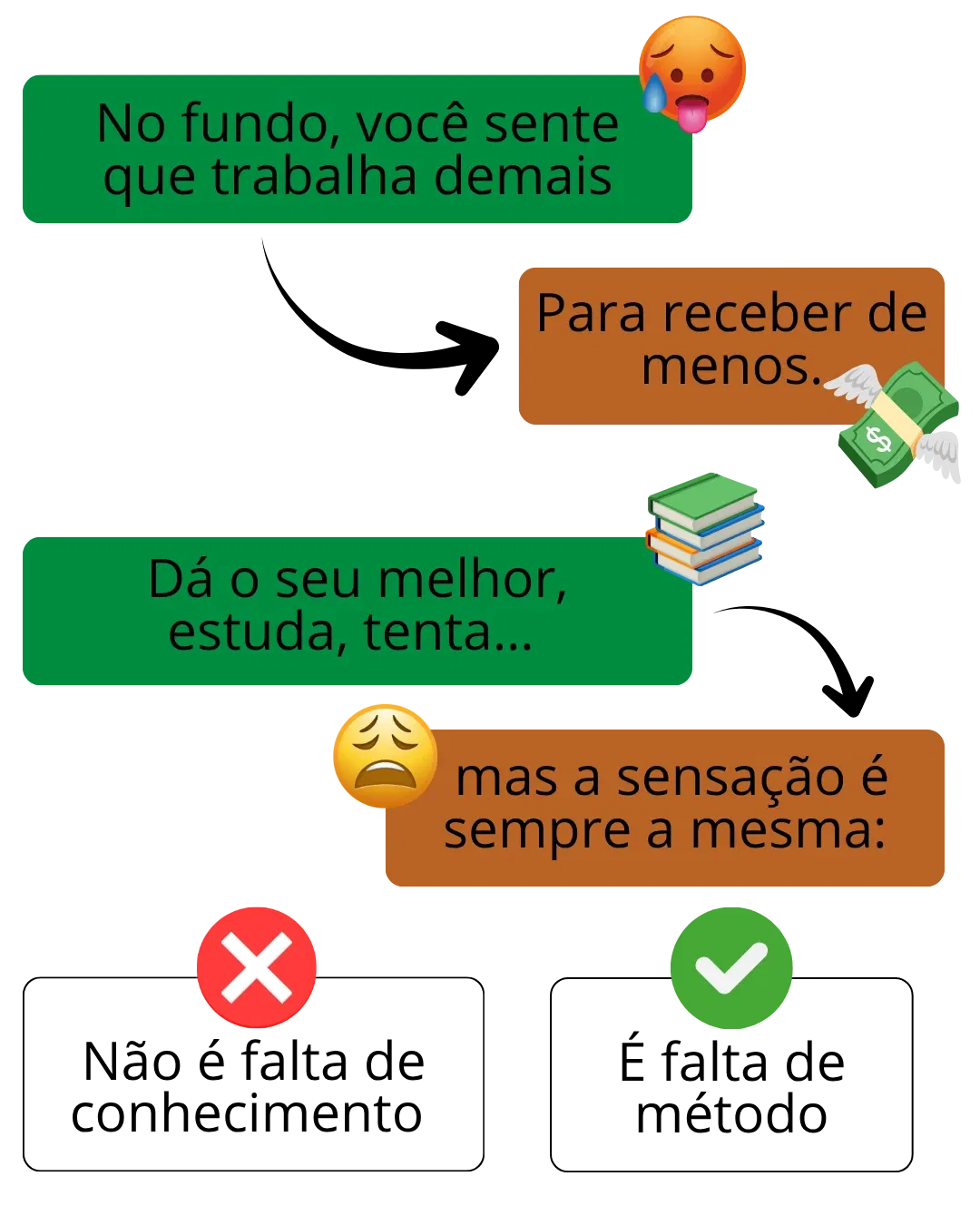 O Método é direto, prático e focado no que realmente dá resultado. Você aplica enquanto aprende